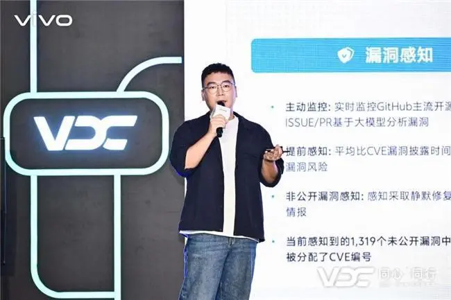 会上,他从端侧轻量级的AI防火墙、CICD 供应链安全、建立针对 Agent 的 Red Team 评估体系、AI内容标识安全、模型体验五方面分享了vivo在可信AI治理的落地实践。同时,他指出vivo积极参与行业AIGC安全标准体系建设,持续为行业标准化贡献力量。vivo主导开展多个标准项目的研究,其中行业首个终端侧大模型安全的标准——《移动智能终端端侧大模型安全实施指南》,已正式在电信终端产业协会发布。vivo将自身在端侧大模型研发中 “埋头打磨” 的技术积累与安全方案,转化为行业首份可参考的安全答卷,推动自研实践升维为行业共识。