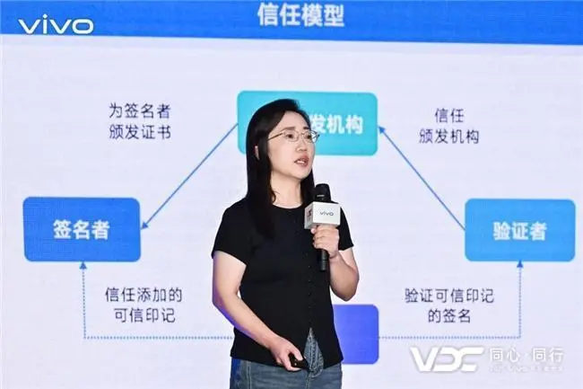 为了解决媒体内容真实性的问题,vivo引入了可信印记技术。vivo首席安全研究专家胡志远介绍道,与数字版权只服务于版权方不同,可信印记不仅服务创作者,还服务传播平台和普通用户。它就像媒体内容的“数字身份证”,记录了内容的来源和编辑历史,支持在创作和传播过程中的追溯和验真,整个过程公开透明,让用户能够判断内容是否真实可信。
